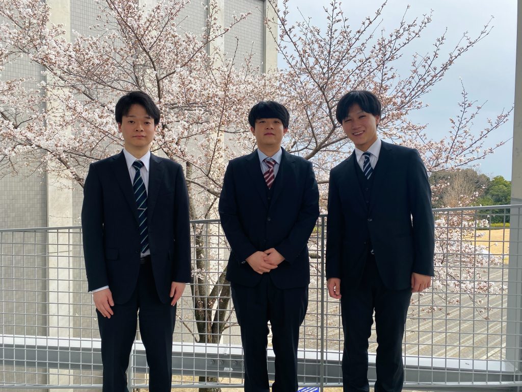 お疲れ様です.このたびM1になりました野田樹希です!4月2日(水)に行われました関西大学大学院入学式を経て, 松下研究室の新たなM1として野田樹希と徳丸晴天の2名,そしてD1の佐藤光起さんの計3名が松下研究室の新たな大学院生として加わりました!