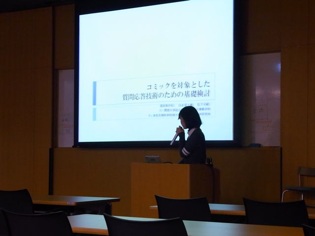 - 福田美沙紀、白水菜々重、松下光範: コミックを対象とした質問応答技術のための基礎検討, 人工知能学会第2種研究会 ことば工学研究会, pp. 57-62.