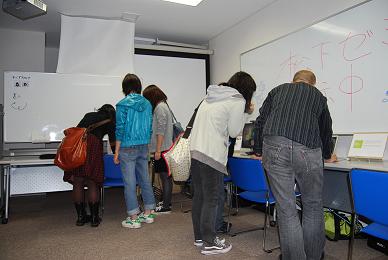 一期生 2009-05-11 第1回課題報告会 学生たちが与えられたテーマのもと、Processing、Rubyなどを用いて作成した作品を披露しました。 総合情報学部助教の井浦崇先生や他の研究室の学生さんをゲストにお招きし、批評していただきました。 |