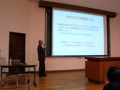 教員 / 研究活動 2009-03-24 言語処理学会でのチュートリアル講演 2009年3月2日に鳥取大学で開催された言語処理学会第15回年次大会のチュートリアルで、松下が「情報可視化の基礎」という題目で講演させていただきました。 |