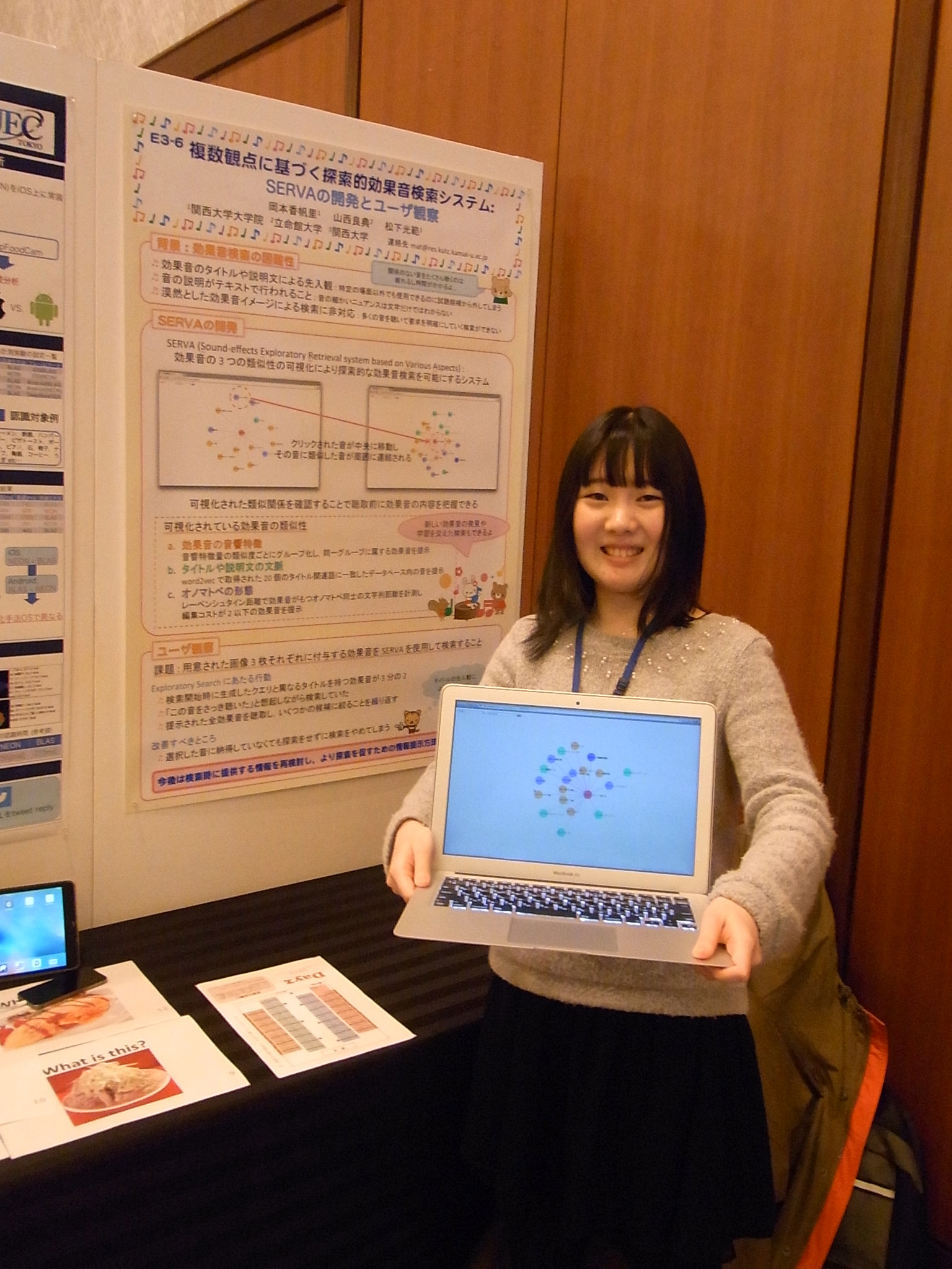七期生 / 五期生 / 研究活動 2017-01-25 DCC研究会で発表しました 2017年1月20日,21日に小豆島のフレトピアホールにて開催されたデジタルコンテンツクリエーション(DCC)研究会で,M2の赤井さんとB4の多井中さんが以下の研究発表を行いました. 漫符を利用したコミック内の心情・行動… 続きを読む > |