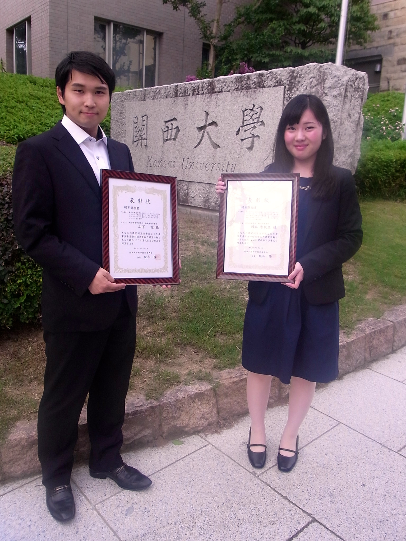 五期生 / 受賞 / 四期生 / 研究活動 2015-07-19 関西大学科学技術振興会の研究奨励賞をM2 山下君とM1 岡本さんが受賞しました 関西大学科学技術振興会 平成27年度第2回研究会において,M2の山下くんとM1の岡本さんが研究奨励賞を受賞しました.この奨励賞はH26年度の研究業績に対して贈られるものです. 山下くんはHCGシンポジウムでの受賞,岡本さ… 続きを読む > |