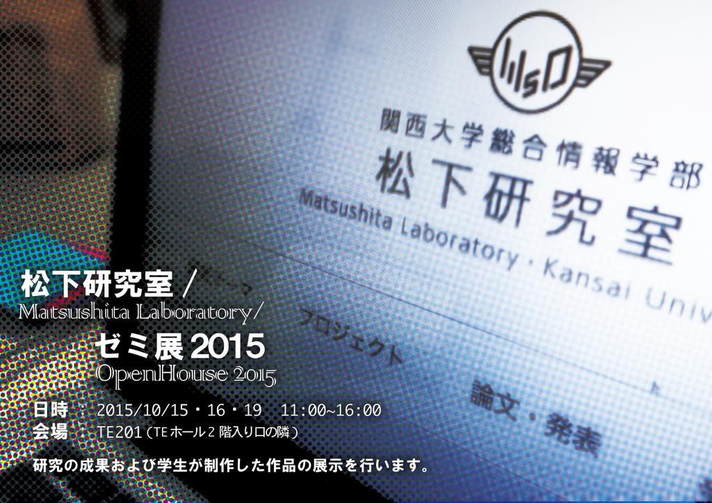 オフィスアワー / ゼミ展 2015-10-14 ゼミ展2015を開催します (追記:終了しました) 松下ゼミの研究成果や学生が制作した作品を展示するゼミ展を今年も開催します.どなたでも見学は可能です! 日時:2015年10月15日(木)・16日(金)・19日(月) 会場:TE201教室(TEホール 2階入り口の隣) 内… 続きを読む > |