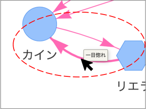 nodeの形はクリストファーが定義した登場人物の役割の類型ごとに変えて表示しており,マウスカーソルを合わせると,役割の詳細(例.Hero)や性格要素(例.おてんば)が表示されます. 役割がわかると,主人公を教え導くなど,登場人物が作中で果たす機能や目的をわかりやすくすることに繋がると考え,nodeの形を役割ごとに変えて表示し,性格要素に関しては,喧嘩別れにより,登場人物が自暴自棄になるなど,関係性の変化が登場人物の性格にも影響を与えうるので,性格特徴を考慮して関係性を把握できるようにするためポップアップから確認できるようにしています.