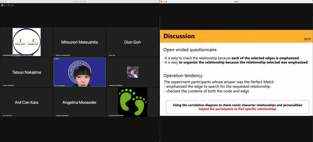 Abstract: Comic character relationships are an essential aspect of understanding comic content. These relationships are often expressed in a character correlation diagram. However, existing diagrams with complex relationships can confuse users, and simple correlation diagrams do not show information on character personalities. Therefore, it is necessary to 1) make these diagrams more visually clear and 2) display character personality information in addition to relationships without increasing the diagram’s complexity. This paper presents an interactive visualization system for character correlation diagrams that display complex character relationships and personalities. We propose a relationship labeling method based on FOAF and implement a user selection function to emphasize specified relationships visually. This paper also provides visualizations of character personalities chosen by the user. Consequently, users can understand both comic characters’ personalities and relationships. This paper verified whether users could correctly find a specific relationship when asked.
