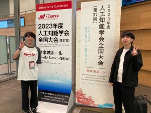 皆さんおはようございます!M1の畑です.2023年6月6日 (火)〜9日(金)に熊本県熊本市熊本城ホールで開催された2023年度 人工知能学会全国大会(第37回)で,M1畑,M1櫟が現地で発表致しました.