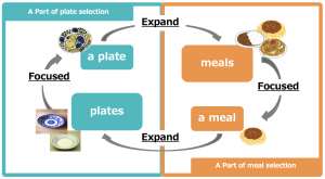 本研究では,この2つの困難点を,「料理ー器間探索サイクル」によってサポートします.