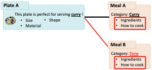 例えば,MealAとMealBの食材や作り方が似ていれば,カテゴリーがカレーでなくても,MealBをPlateAに盛り付けることも可能です.